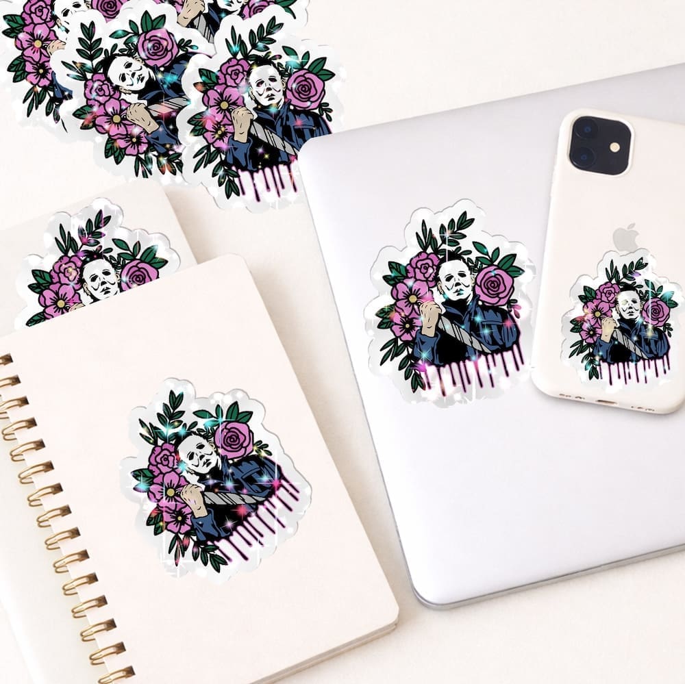 Floral Michael Myers Halloween Glitter Sticker