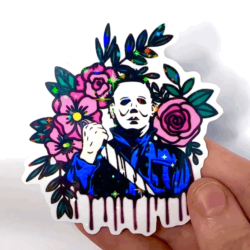 Floral Michael Myers Halloween Glitter Sticker