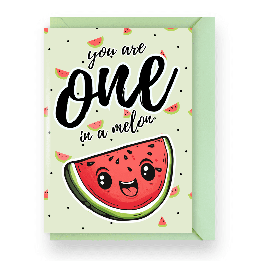 Celebrate your little sweetie with this “You’re One in a Melon” birthday card, featuring the cutest watermelon design ever! Perfect for the tiny human who’s already stolen your snacks and your heart. Warning: this card may cause uncontrollable “aww” reactions and cravings for fruit salad.